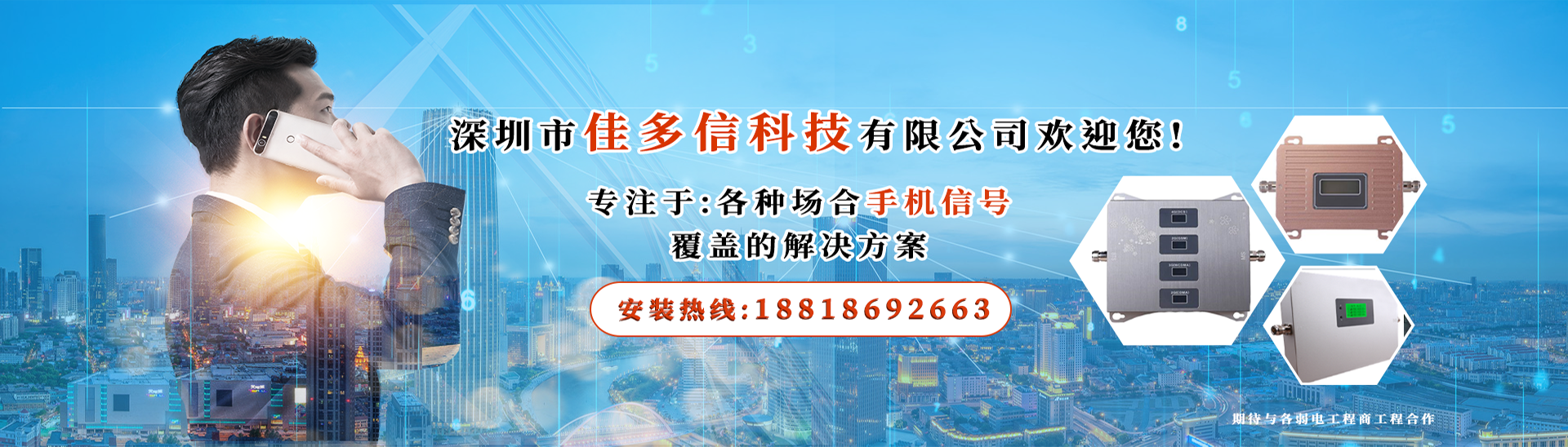 ? ? ? ? 深圳市佳多信科技有限公司、坐落于廣東省深圳市龍崗區龍崗中心城、自2013年成立至今、已發展成為一家集移動通信網絡信號覆蓋工程專業團隊、適用于各種場合包括廠房、辦公場所、地下車庫、娛樂場所、電梯、別墅、隧道、山區等...手機信號放大室分覆蓋工程服務商!